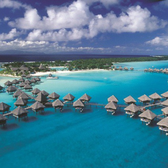 Bora Bora na souostroví Francouzská Polynésie vždycky bude synonymem nádherné pláže. Tvoří ji bílý písek a výhled na tyrkysově modrou vodu. V dálce vidíte tu nejsytější modrou barvu, která naznačuje hloubku a z bungalovu nad vodou máte pod kontrolou místní podmořský život.