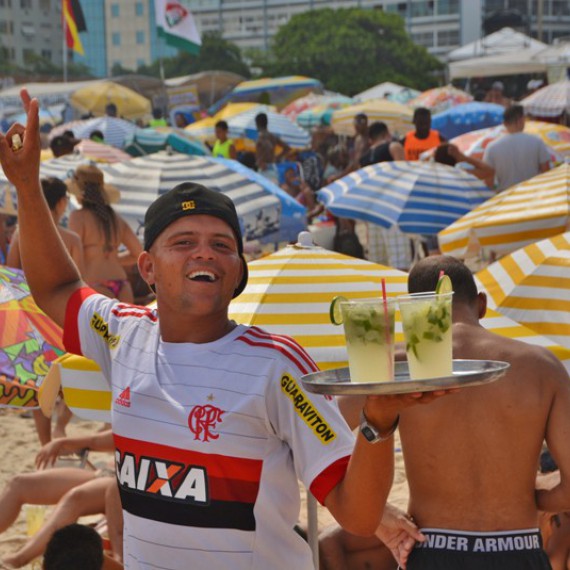 Na pláž Copacabana se chodí bez kabelky a jen s pár drobnými v kapse. Všechny věci by měly zůstat na hotelovém pokoji. Doporučujeme sledovat čilý život ve vodě i na suchu, prohlížet si krásná těla Brazilců i skromné bikiny sexy Brazilek. Odpustit byste si neměli skleničku koktejlu caipirinhe, něco si koupit na bleším trhu, pak zahnat hlad rybími kuličkami bolinhas de bacalhau a žízeň vodou z kokosu. Předtím, než turista vkročí na pláž, musí si v obchodě s botami koupit žabky, bez nich se tu totiž neobejdete. Jejich cena je proti Evropě minimální a výběr neuvěřitelný.