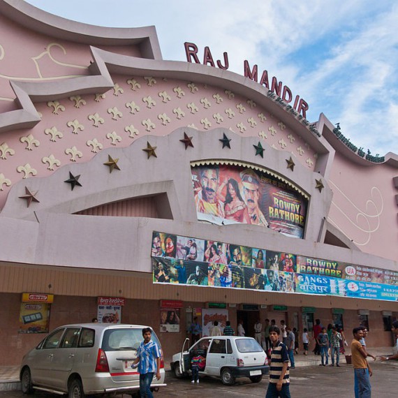 Samozřejmě i v Indii je možnost navštívit multiplexy a prohlédnout si hollywoodské filmy, ale v každém větším městě je v centru pozornosti zejména filmový svatostánek, kde je na programu výhradně bollywood masala. Jednoznačně nejznámější bollywoodské kino je Raj Mandir v Jaipuru. Zde už čekání na lístky patří k samotnému představení. Je nutné přijít včas, protože tabule zavěšena nad zamřížovaným okénkem pokladny je neúprosná. Pokud ji pracovník bezpečnostní služby otočí (tentýž, co křídou na černou tabulku napsal promítací čas a cenu lístků), dočtete se, že je vyprodáno. Můžete si vybrat, zda budete sedět v diamantové zóně (dražší a izolovanější v balkónové části), nebo jen ve smaragdové. Právě zde se dostanete do centra dění, mezi lidi. Raj Mandir není klasické kino. Nám Evropanům připomíná spíše divadlo. Měkké koberce, těžké ozdobné lustry a jen jediný promítací sál. Vstup do kinosálu je zásadně až 15 minut před promítáním. Třeba si přece koupit keksíčky, nápoje, nebo popcorn (ano, i tady ho mají, ale bývá sladký). Fousatý pán vám baterkou posvítí na vaše sedadlo a show může začít. I po tmě vidět, že obecenstvo žije. Opravdu je to spíše divadlo. Lidé, pokud se jim něco líbí, tleskají, pokud ne, pískají. Čas od času jsou slyšet i výkřiky. Těžko říct, zda nenávistné, či povzbuzující, ale děj na plátně je každému i bez dobré znalosti hindi poměrně jasný. Zlatý schematizmus v dějových osnovách! Tanečním vstupům porozumí každý s minimem hudebního sluchu. Zvuk je naplno a když je plno i v publiku, tak přesto, že místnost je klimatizovaná, občas bývá fakt teplo.