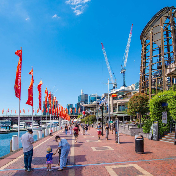 Darling Harbour je rušná nábřežní oblast, která je jen pár minut od centra Sydney, ale stále si zachovává svůj takřka intimní ráz. Tato rodinná (nejen) destinace nabízí dost atrakcí na to, aby se zde děti zabavily na celý den, najdete zde vše od fascinujících muzeí po vzrušující divokou přírodu a vynikající možnosti stravování. Mohou si pořizovat selfie se svými oblíbenými hvězdami v muzeu voskových figurín Madame Tussauds, setkat se s dugongy v akváriu SEA LIFE Sydney Aquarium (jedno z největších akvárií světa s cca 700 živočišnými druhy!), ocitnout se poblíž koal ve WILD LIFE Sydney Zoo nebo spálit trochu energie na dětském hřišti Darling Quarter. Užijte si pobyt u vody na maximum a naskočte na vyhlídkovou plavbu po okolí nebo prozkoumejte jednu z lodí v Australském národním námořním muzeu/Australian National Maritime Museum. Velkým zážitkem je například prohlídka ponorky HMAS Onslow.