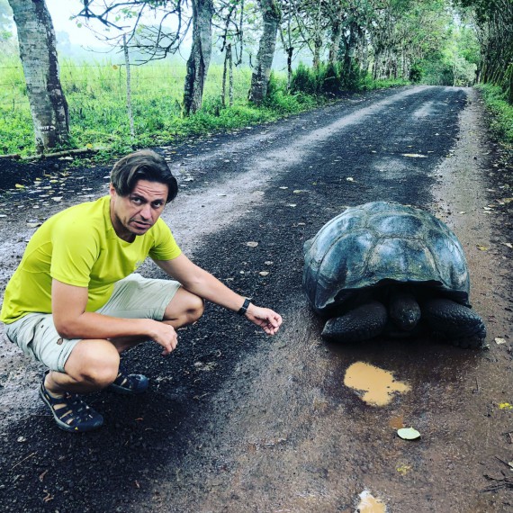 Po snídani ihned vyrážíme do Darwinova centra. Kamenným chodníkem mezi stovkami obrovských kaktusů přicházíme na místo, které nás uvede do problematiky ostrovů. Proč jsou Galapágy tak známé? Život Charlese Darwina a co ho na Galapágách uchvátilo. Kde žila nejslavnější želva světa Osamělý George? Opravdu měl 150 let? Dnes chceme vidět minimálně tucet želv a zároveň více druhů. Chceme si prohlédnout kostru velryby a celé muzeum v Darwinově centru. Chceme vidět lachtany, lovící pelikány a pak skočit na pláž. Hodinová procházka po nejkrásnější pláži ostrova a zřejmě i celých Galapág. Bílý písek a modré moře... které je naprosto unikátní, v moři můžete vidět plavat ještěry – leguány mořské. Když Charles Darwin uviděl plovoucí leguány a všiml si, že ocas těchto praještěrů nemá kulatý průměr, jak je běžné, ale je plochý, aby se jím dalo manipulovat jako kormidlem. Když si všiml, že tyto leguáni nozdrami vysmrkávají přebytečnou sůl, kterou do svého těla dostali tím, že se živí mořskými řasami. Když si všiml, že mají silné drápy přizpůsobené tomu, aby se uměli zachytit při plavání na skálu. Že na rozdíl od barevných suchozemských leguánů jsou tito černí, přizpůsobeni prostředí, kde se pohybují. ... došlo mu, že tato zvířata se přizpůsobily okolním podmínkám, které jsou na Galapágách unikátní. No, když je to takto zřetelně vidět na odlehlých Galapágách, tak to musí platit i jinde – dovolil si zauvažovat Darwin.