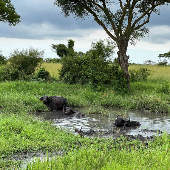 Čekají nás sloni, buvoli, antilopy, lvi i šance spatřit leoparda. Národní park nabízí rozmanitou krajinu savan, mokřadů a sopečných kráterů – díky tomu zde vzniká mimořádně bohatý ekosystém. Výjimečný je i Kazinga kanál, který spojuje jezera Eduard a George. Během plavby po kanálu budete mít možnost pozorovat pijící zvířata, hrochy, krokodýly i množství vodního ptactva, včetně majestátního orliaka jasnohlasého.