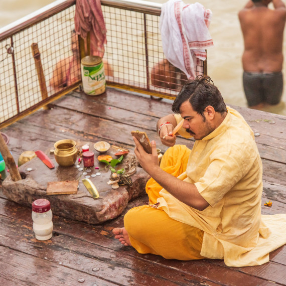Je 5:30 ráno a my vyrážíme do ulic nejsvětějšího města Indie, Varanasi. Před hotelem nás čeká náš dlouholetý partner Dinesh a jeho jednotka řidičů tuk tuků. Nasedáme do malých vozidel a vyrážíme vzhůru na východ slunce nad Gangou. Kolem nás se město probouzí. Pro Indy je příliš brzy. Na Ganze je ale už život v plném proudu. Od 5:30 se na jižním konci nábřeží cvičí jóga. Ve střední části už pro změnu probíhá jeden z nejstarších rituálů historie – ranní koupání. Stovky lidí stojí po pas ve vodě a mezi dlaněmi přelévají vodu posvátné řeky pro svou duchovní očistu, jakož i za předky, kteří je již opustili. Dřevěnou loďkou plujeme podél nábřeží a pozorujeme život. Na severu probíhají ranní modlitby a kněz obětuje bohyni řeky kadidlo. Kousek od nás je již nejsvětější část nábřeží – Manikarnika Ghat – nejslavnější krematorium na světě, pokud Vás spálí tady, tak podle hinduismu jdete rovnou do nebe. Plujeme blíže. Na Manikarnika se spaluje 24 hodin denně a ani v šest ráno, zde není úplný klid. Zaměstnanci právě odtlačují popel jedné z hranic do Gangy a hned vedle nich kráva přežvykuje obětní věnce. Z dalších hranic líně stoupá kouř a kdyby člověk nevěděl, co se zde děje, tak má pocit, že jsou to pozůstatky nějaké noční opékačky. Škoda, že tu je přísný zákaz focení, z vody vypadá spalovna zvlášť malebně. Tedy pokud se nepodíváte příliš detailně na to, co plave ve vodě. Slunce pomalu vychází výše a jeho žluté světlo trhá mlhu nad řekou. Kolem nás létají racci a ve Varanasi začíná den. Podél celé řeky se koupou lidé a ve vzduchu jsou cítit pověry, jimiž je toto místo prosáklé. Varanasi by měl podle mě navštívit každý. Je to jiný svět, a právě ráno na Ganze je ideální čas tento svět poznat z jiné stránky.