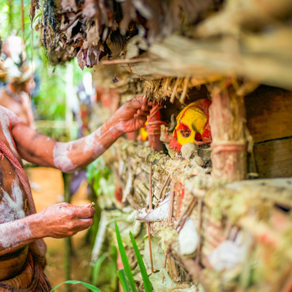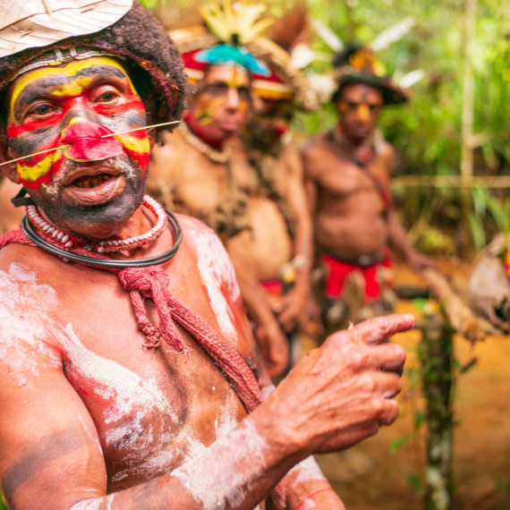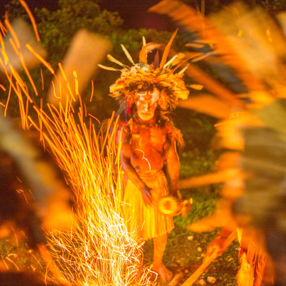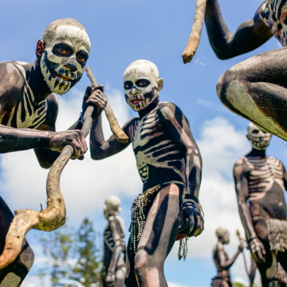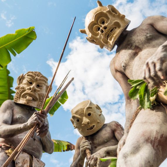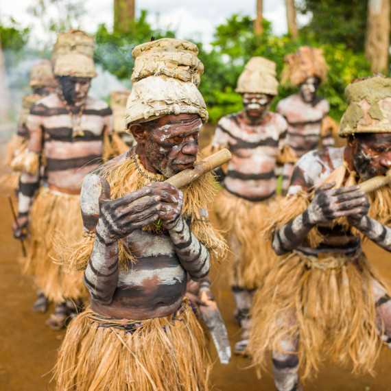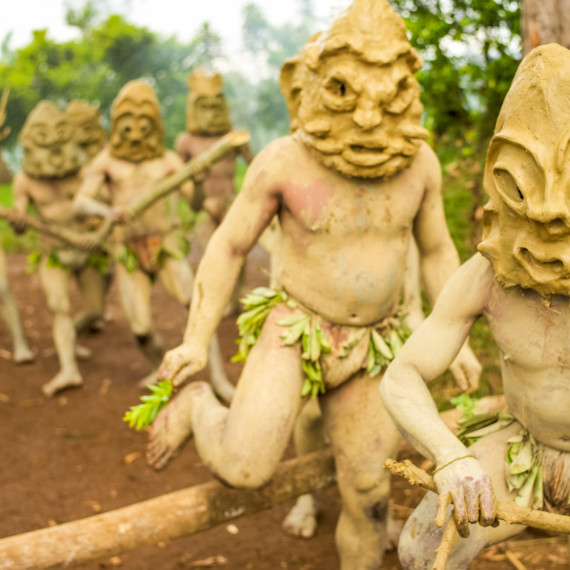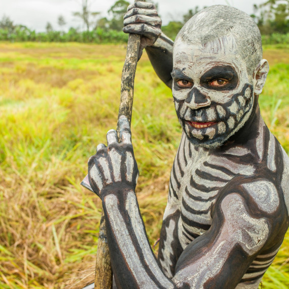 Po obědě uvidíme tradiční výrobu masek Asaro. Nebojte se ušpinit od bahna – pochopíme, proč se jim říká „Bahenní lidé“. Masky jsou hotové a my jsme připraveni na slavnost. Tanec Moko Moko – tanec vítězství, který Mudmeni tancovali po kmenových bojích – bude tentokrát předveden jen pro nás.