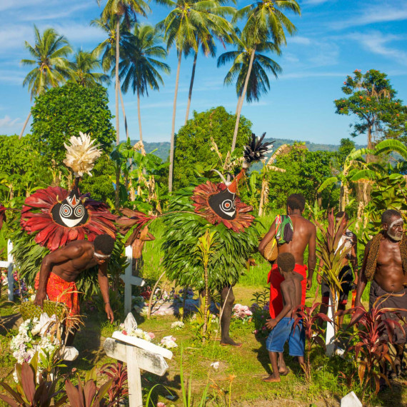 Místní věří, že moře je místem, kam odcházejí duše zemřelých, a proto jsou hroby často na pobřeží. Vše působí uspořádaně a udržovaně. Večer se vrátíme do KAVIENGU, kde si u vychlazeného PNG lageru vychutnáme slavné humry, považované za jedny z nejlepších na světě.